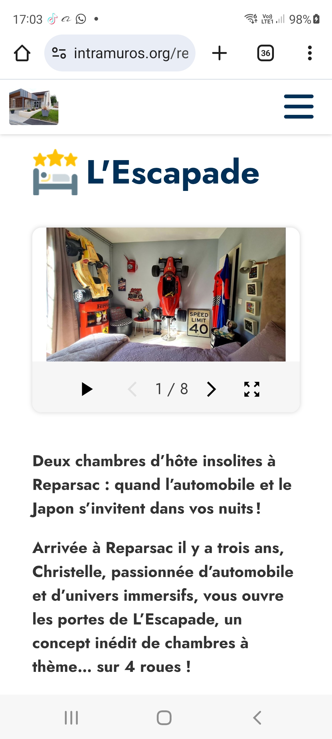 – les étapes vers la création de mes futurs gîtes à thème automobile,