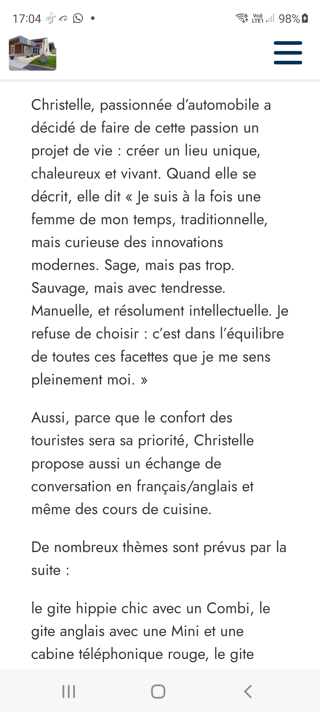 – les avancées de mes chambres d’hôtes actuelles,