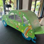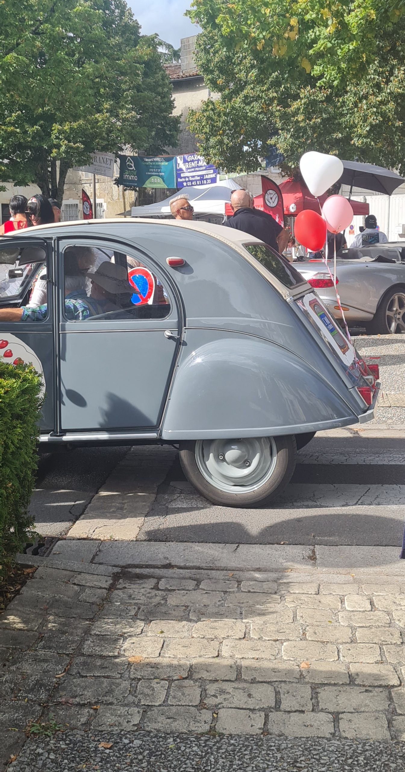 11 OCTOBRE: LES MASCOTTES DE L’ESCAPADE TRES INTERESSEES PAR LE DEBALLAGE D’UNE 2 CV